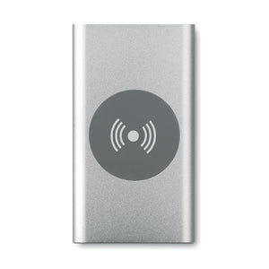 Induktive Ladestation mit 4000 mAh Powerbank aus recyceltem Aluminium. Inkl. Typ C Adapter. Ausgangsleistung: DC5V/1.0A.