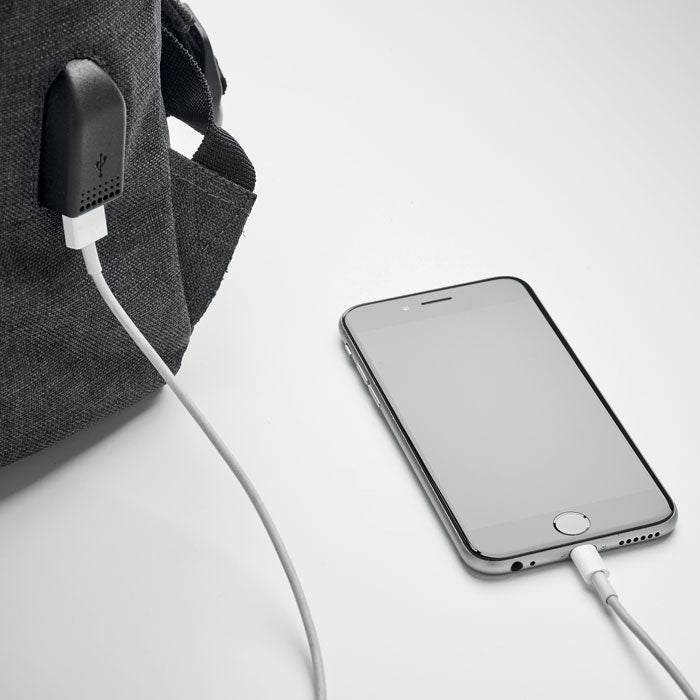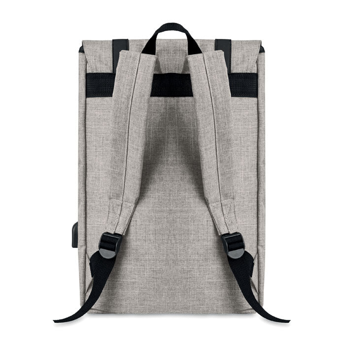 Rucksack mit 15'' Laptop-Fach und USB-Ladekabel. Magnetischer Schnappverschluss und Frontfach mit Reissverschluss. Gepolsterte Schultergurte. Zweifarbiger 600D Polyester.